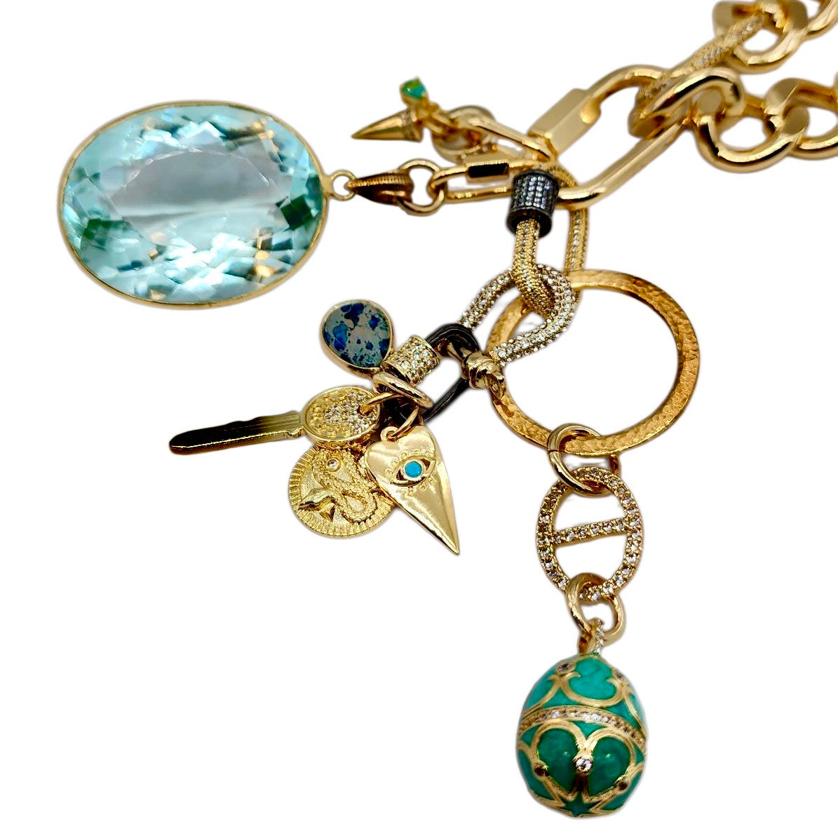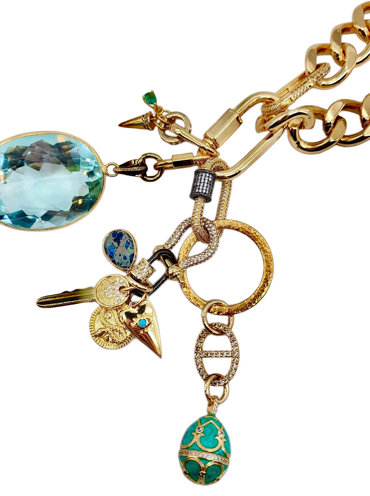 CAN BE WORN AS A NECKLACE, WRAP AROUND BRACELET AND OR BAG CHARMS. UNCLIP TO RE-ARRANGE AND OR MIX & MATCH HOWEVER YOU LIKE.