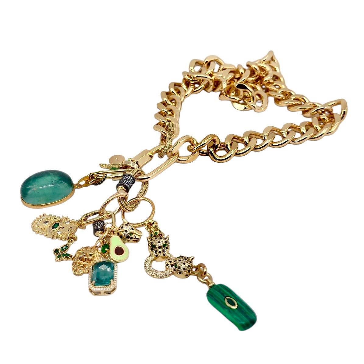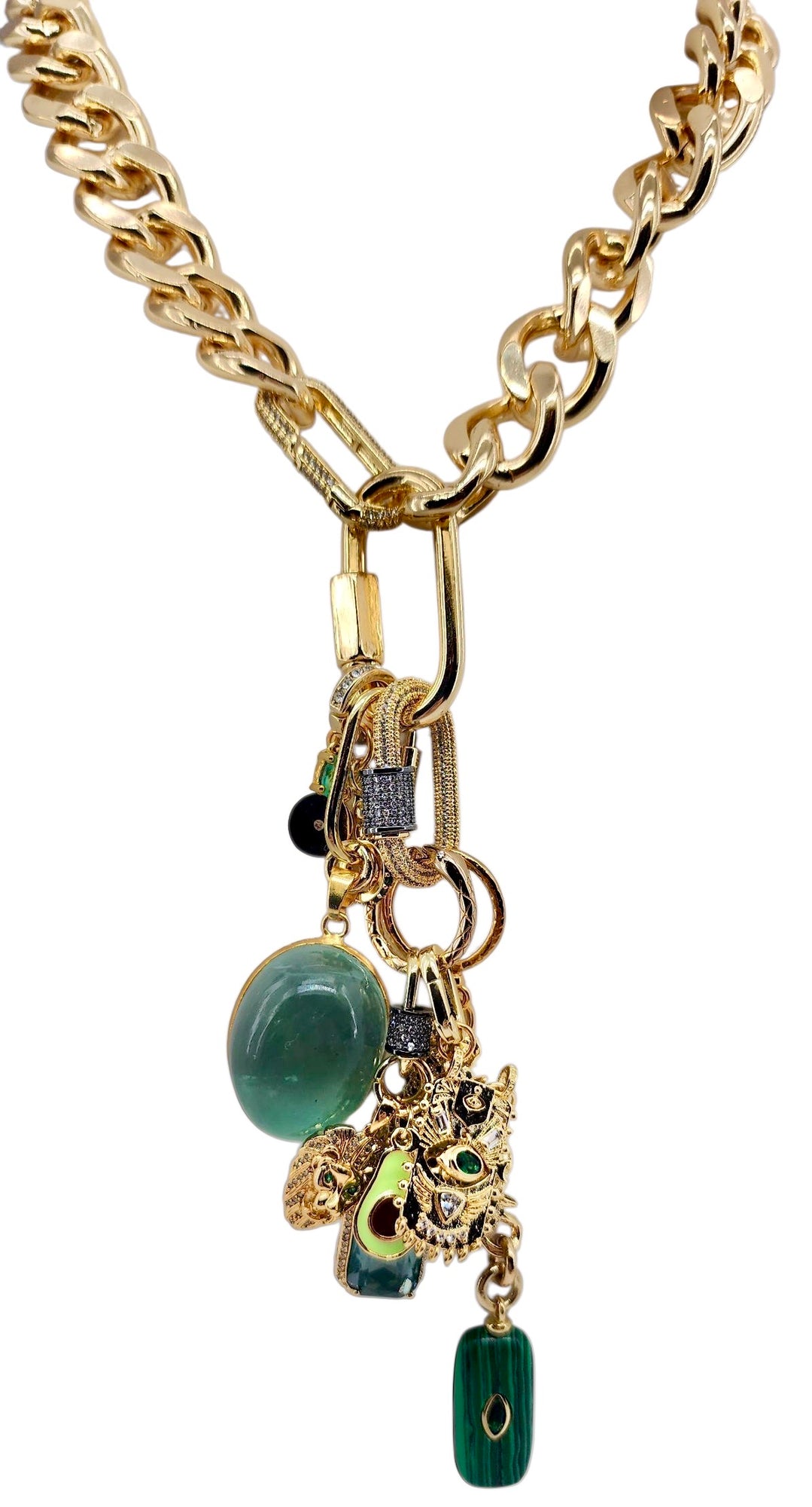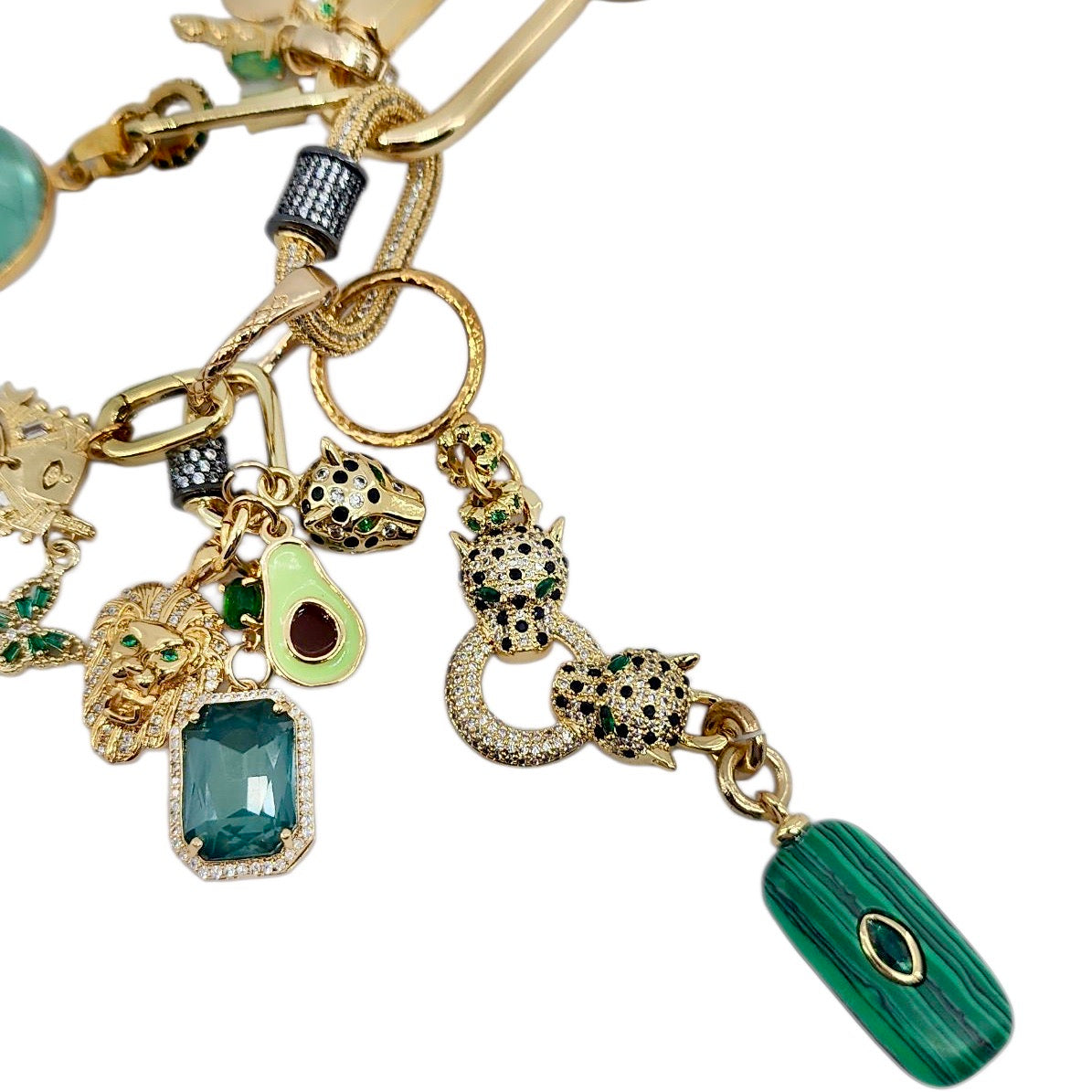 • 30MM GOLD PALTED MALACHITE RECTANGLE CZ CHARM