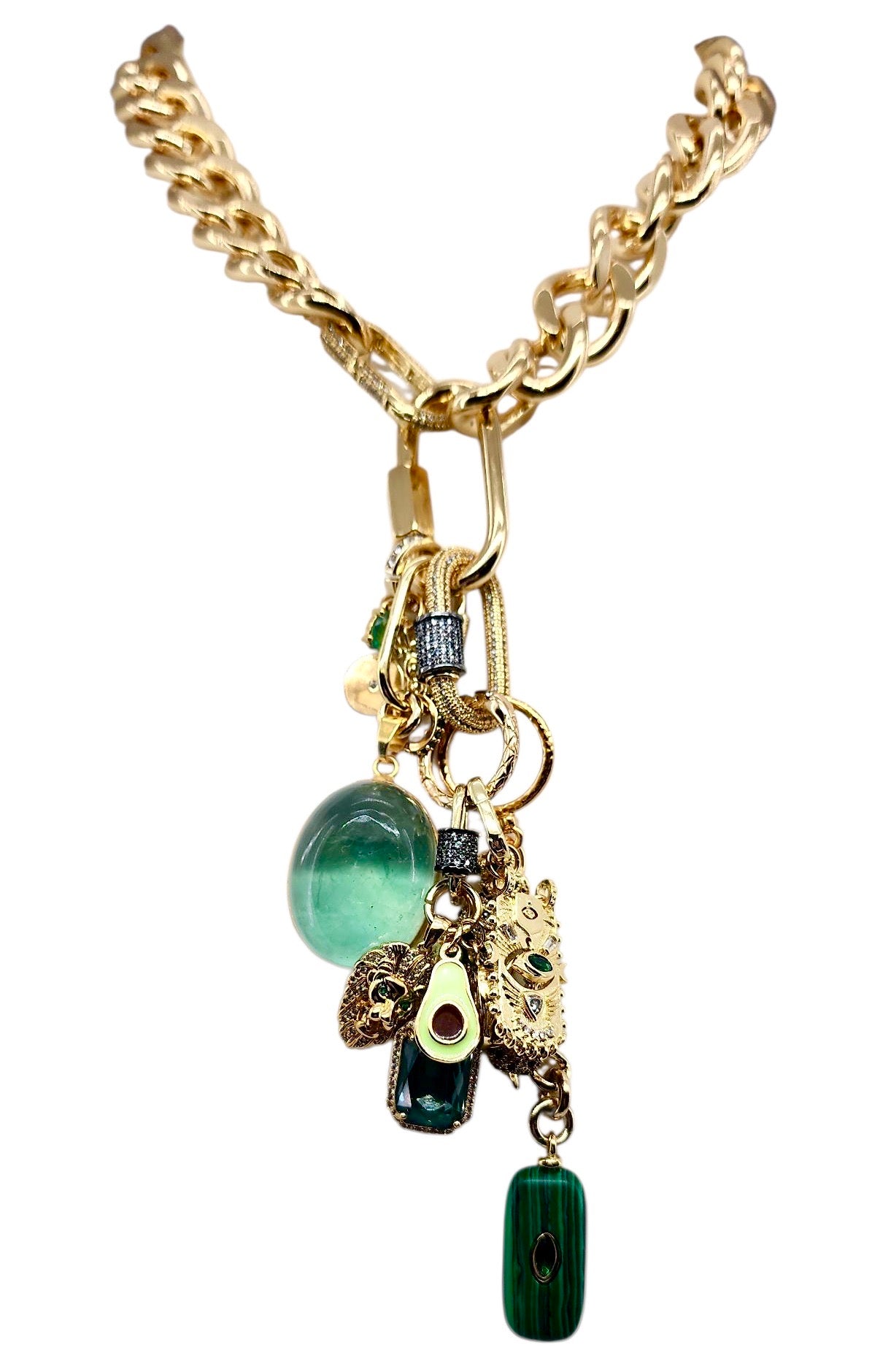 • 30MM GOLD PLATED GENUINE FLUORITE GEM