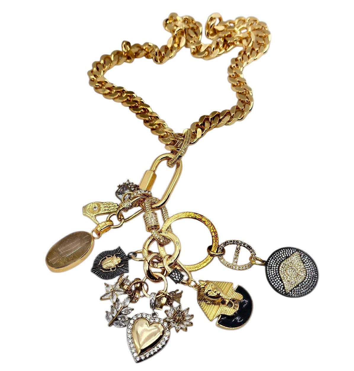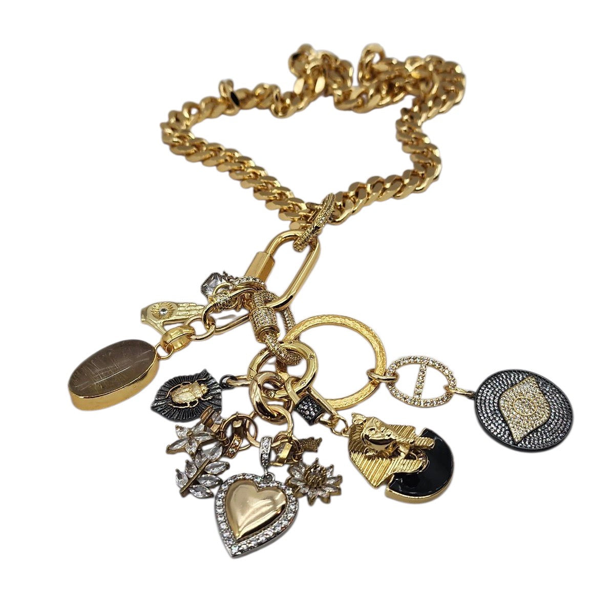 18MM GOLD FILLED GOLD & GUN METAL CZ MICRO PAVE MINI CARABINER