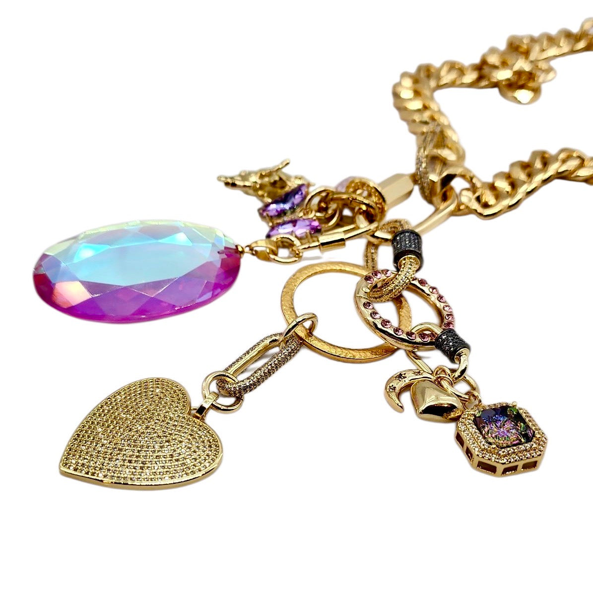 CAN BE WORN AS A NECKLACE, WRAP AROUND BRACELET AND OR BAG CHARMS. UNCLIP TO RE-ARRANGE AND OR MIX & MATCH HOWEVER YOU LIKE.