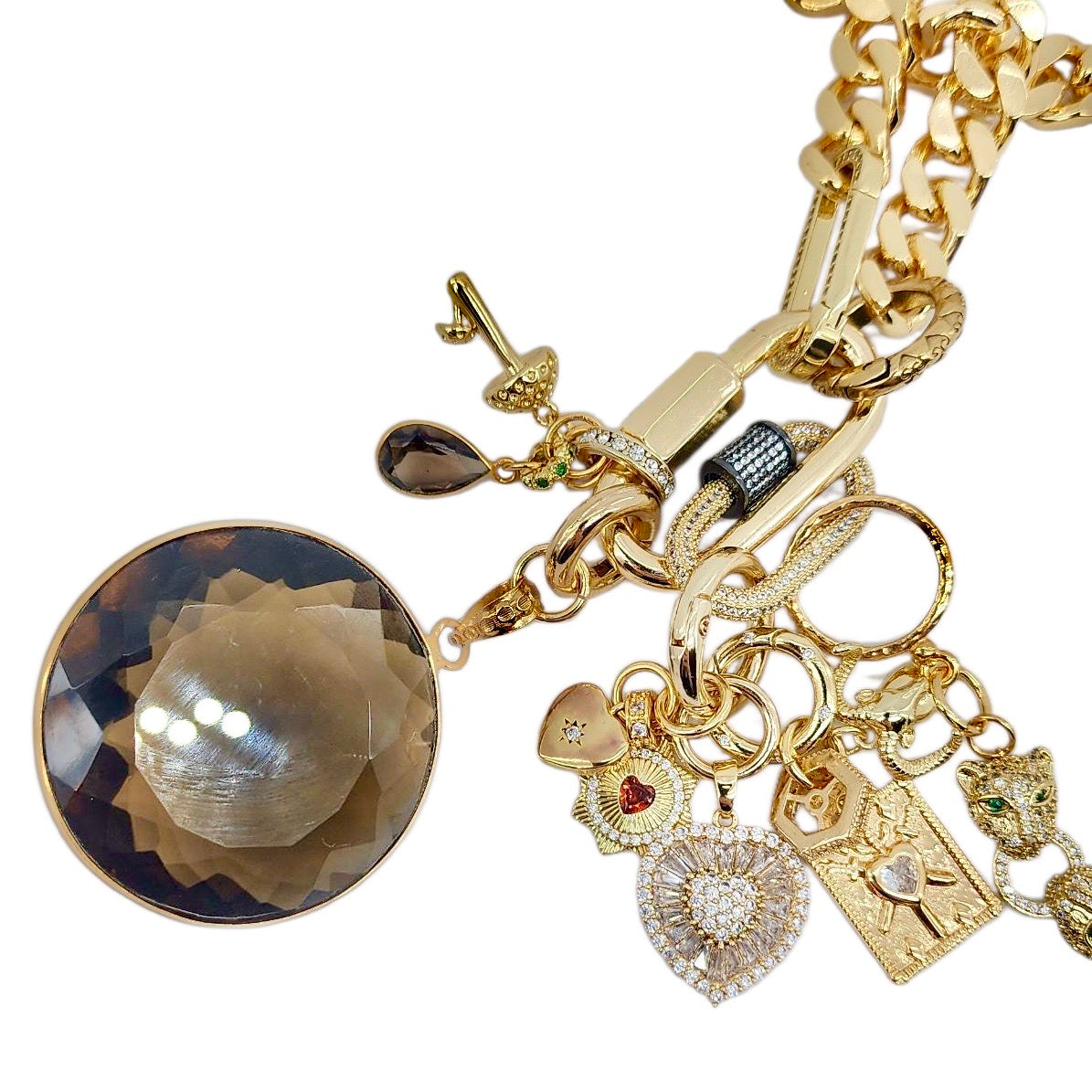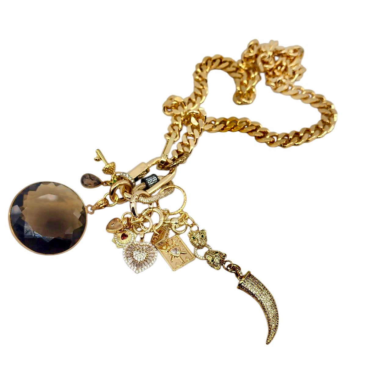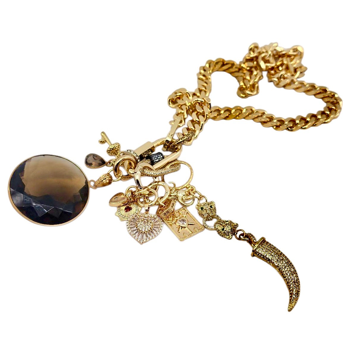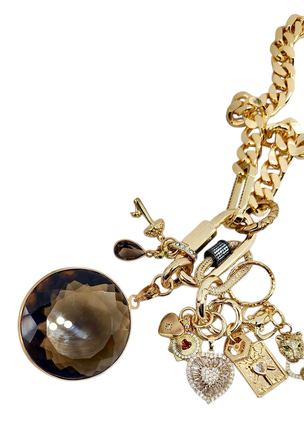 CAN BE WORN AS A NECKLACE, BRACELET AND OR BAG CHARMS. UNCLIP TO RE-ARRANGE AND OR MIX & MATCH.