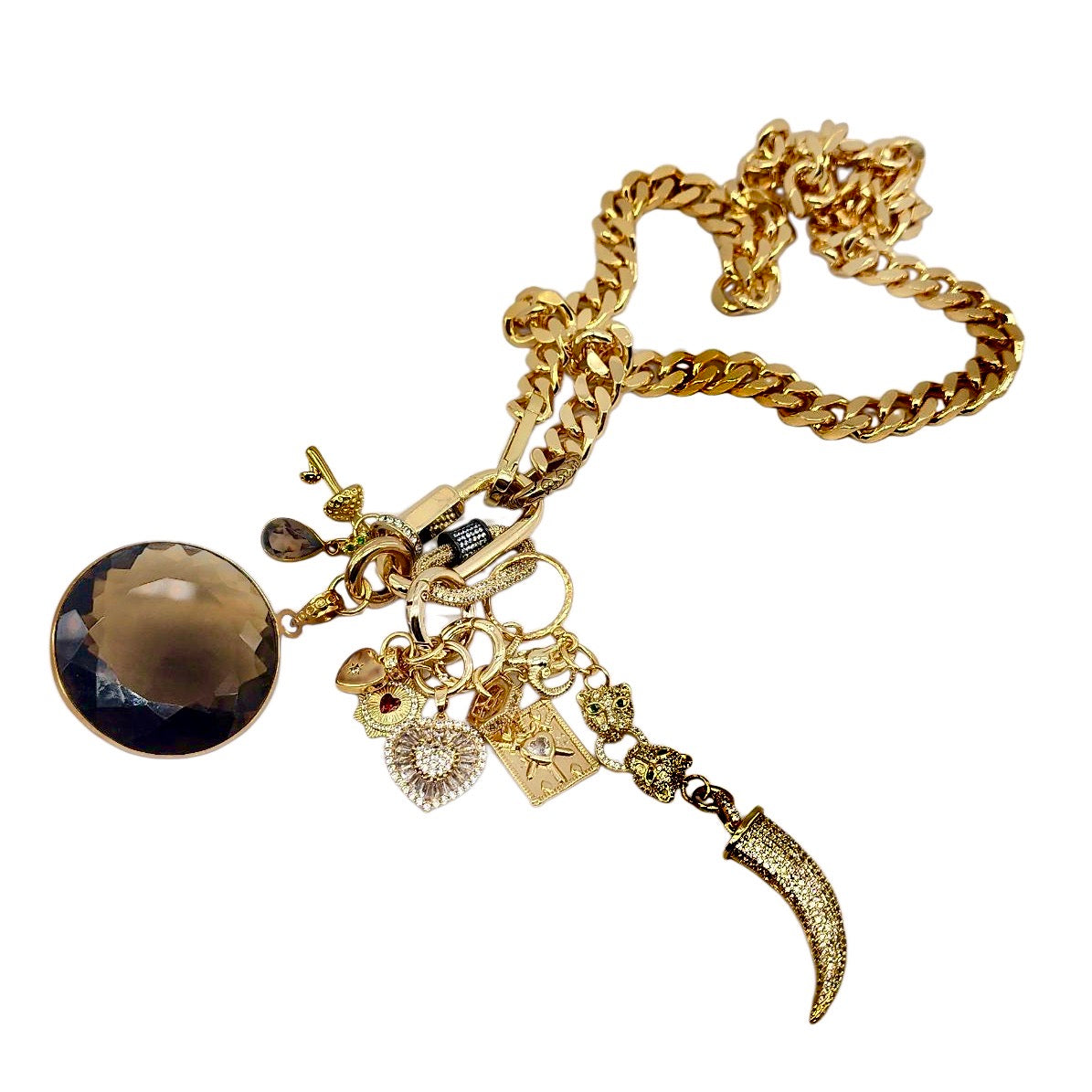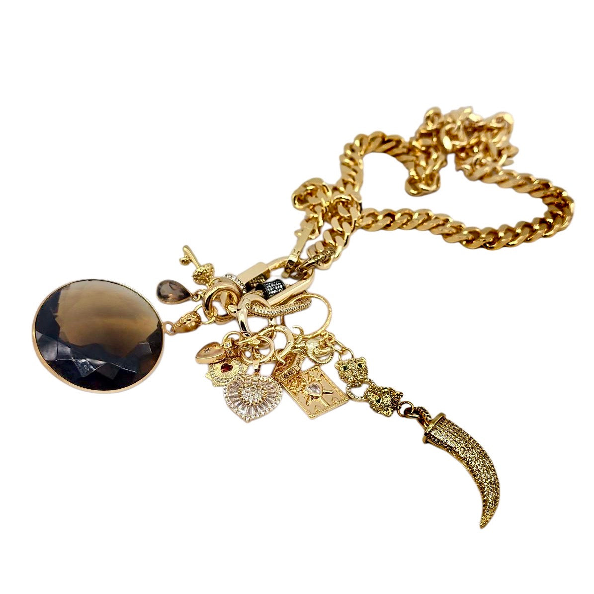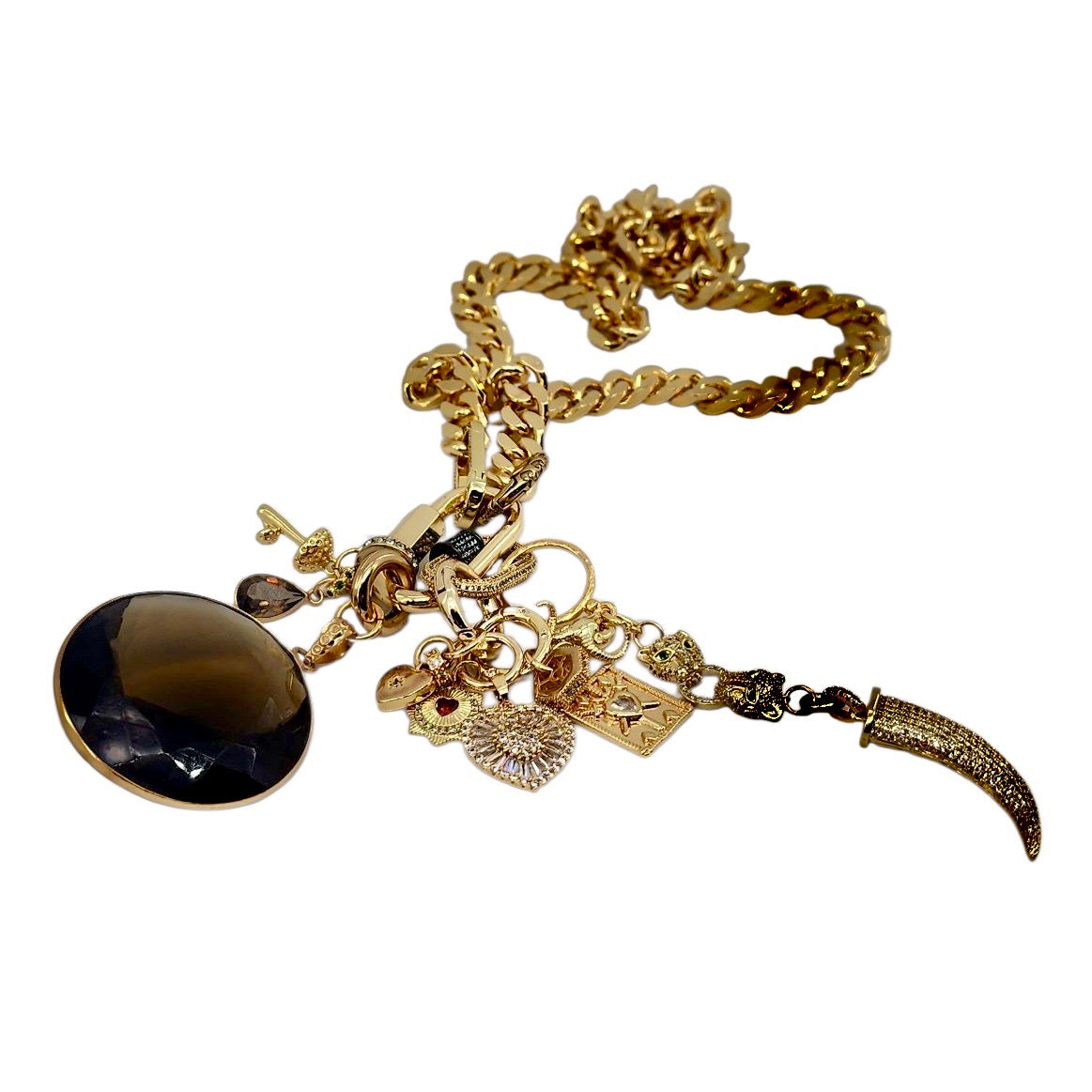 CAN BE WORN AS A NECKLACE, BRACELET AND OR BAG CHARMS. UNCLIP TO RE-ARRANGE AND OR MIX & MATCH.