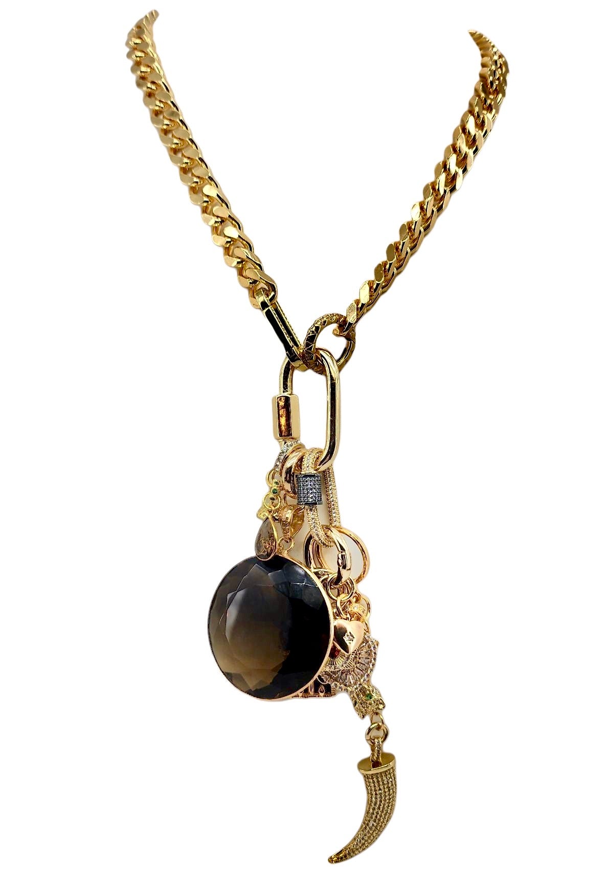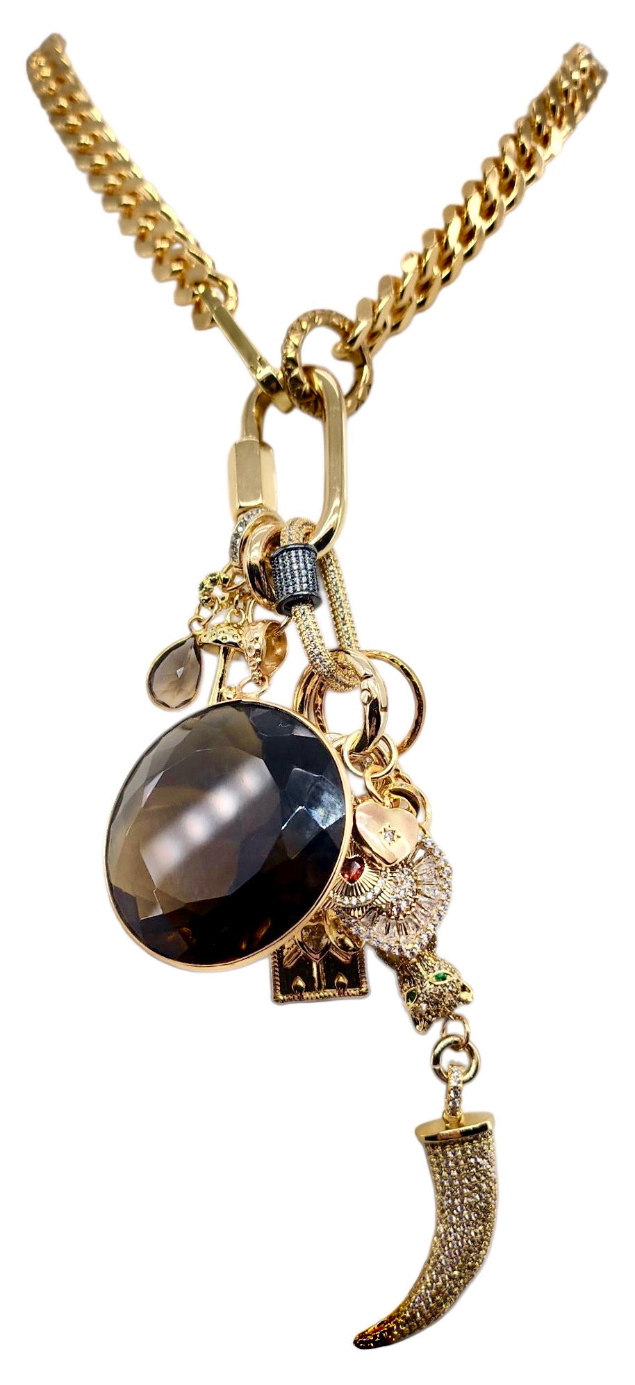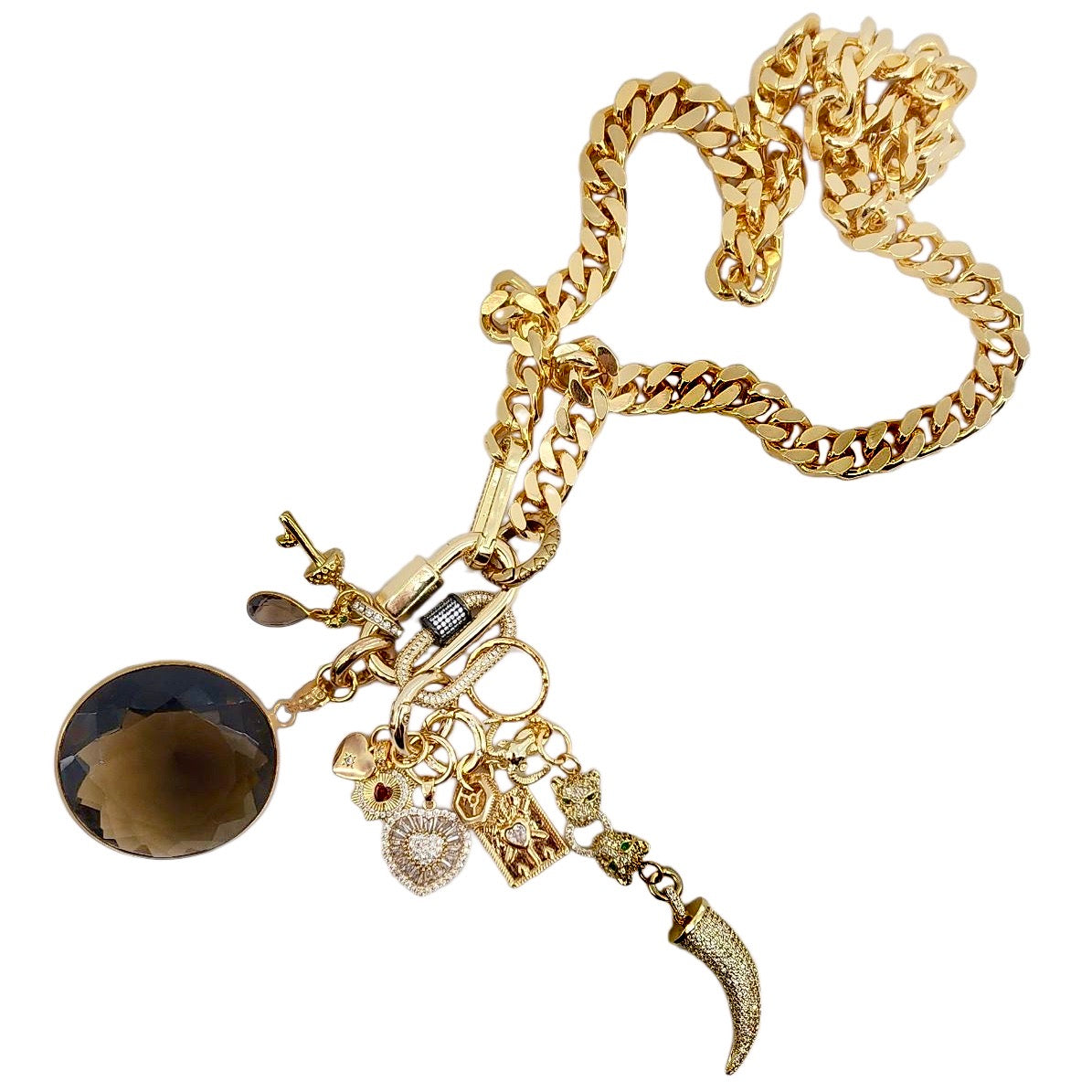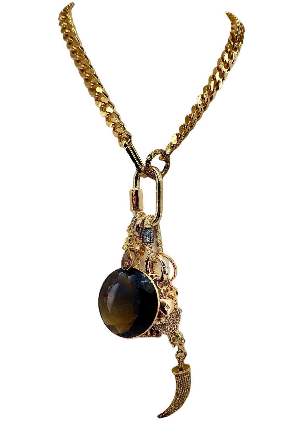 CAN BE WORN AS A NECKLACE, BRACELET AND OR BAG CHARMS. UNCLIP TO RE-ARRANGE AND OR MIX & MATCH.