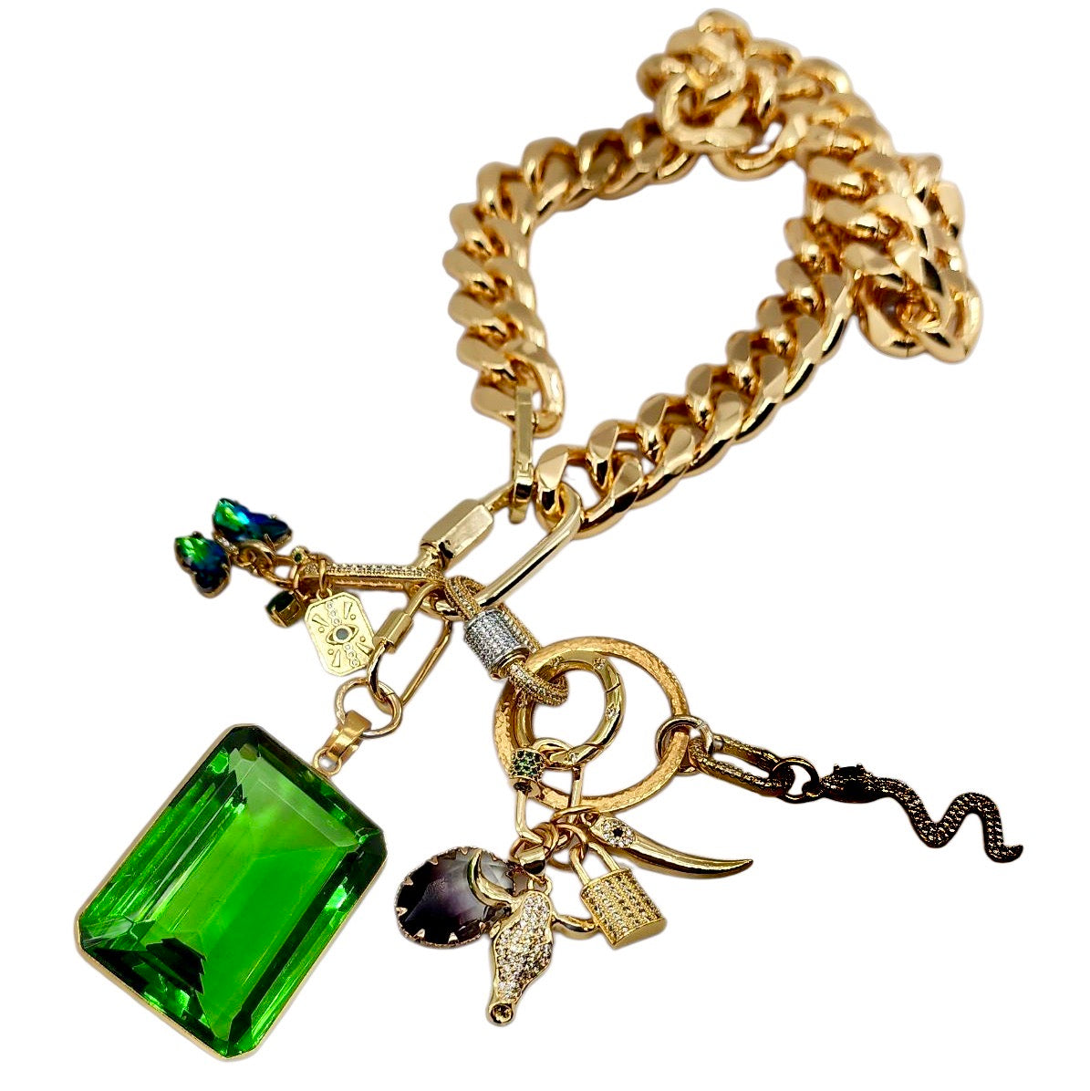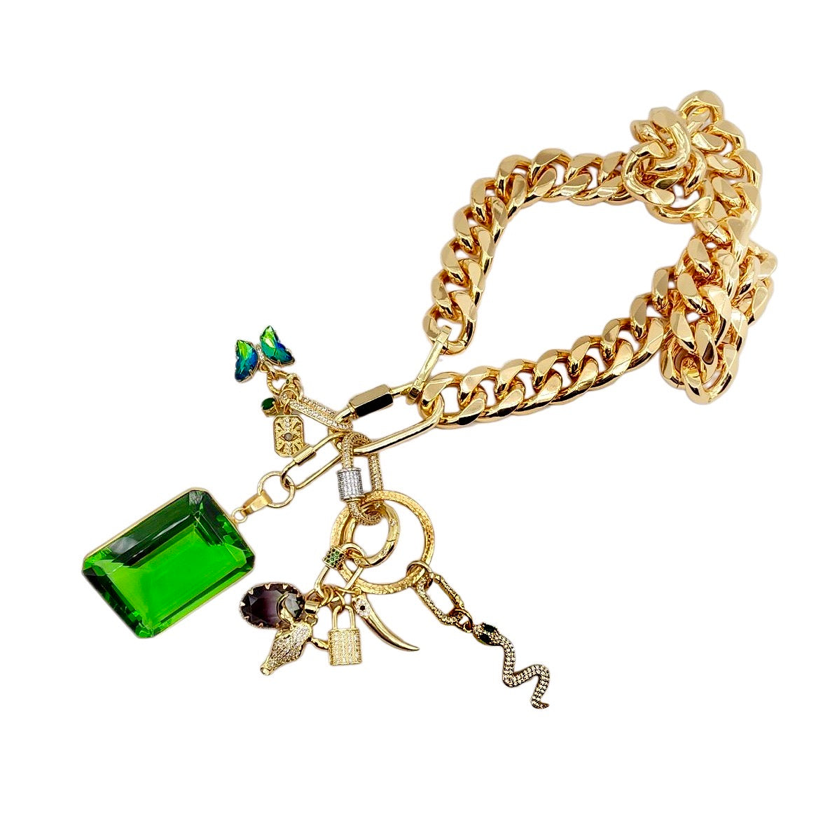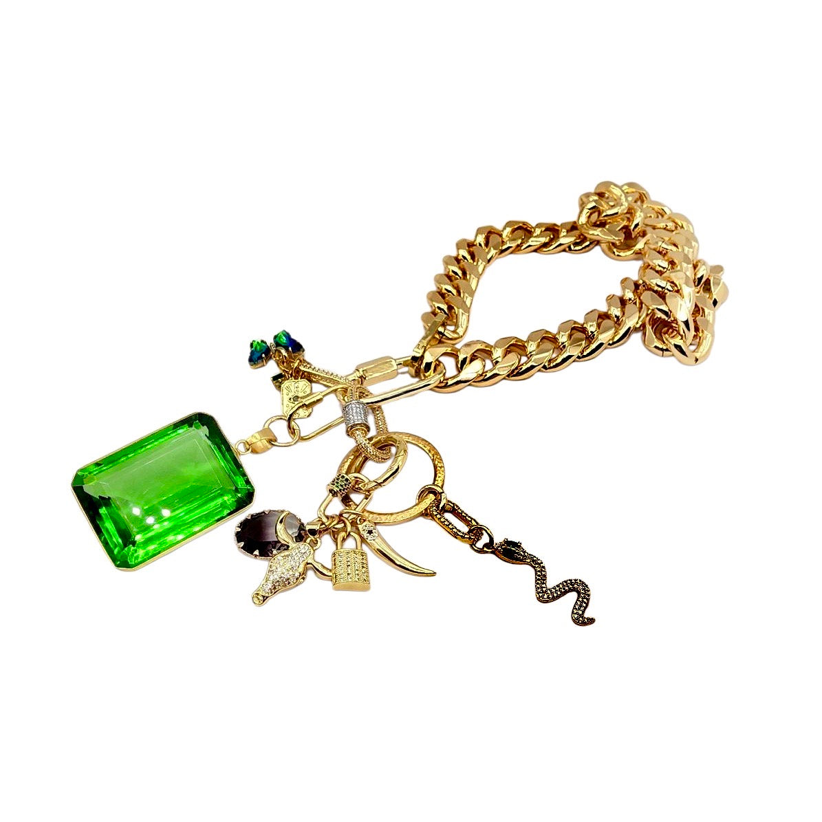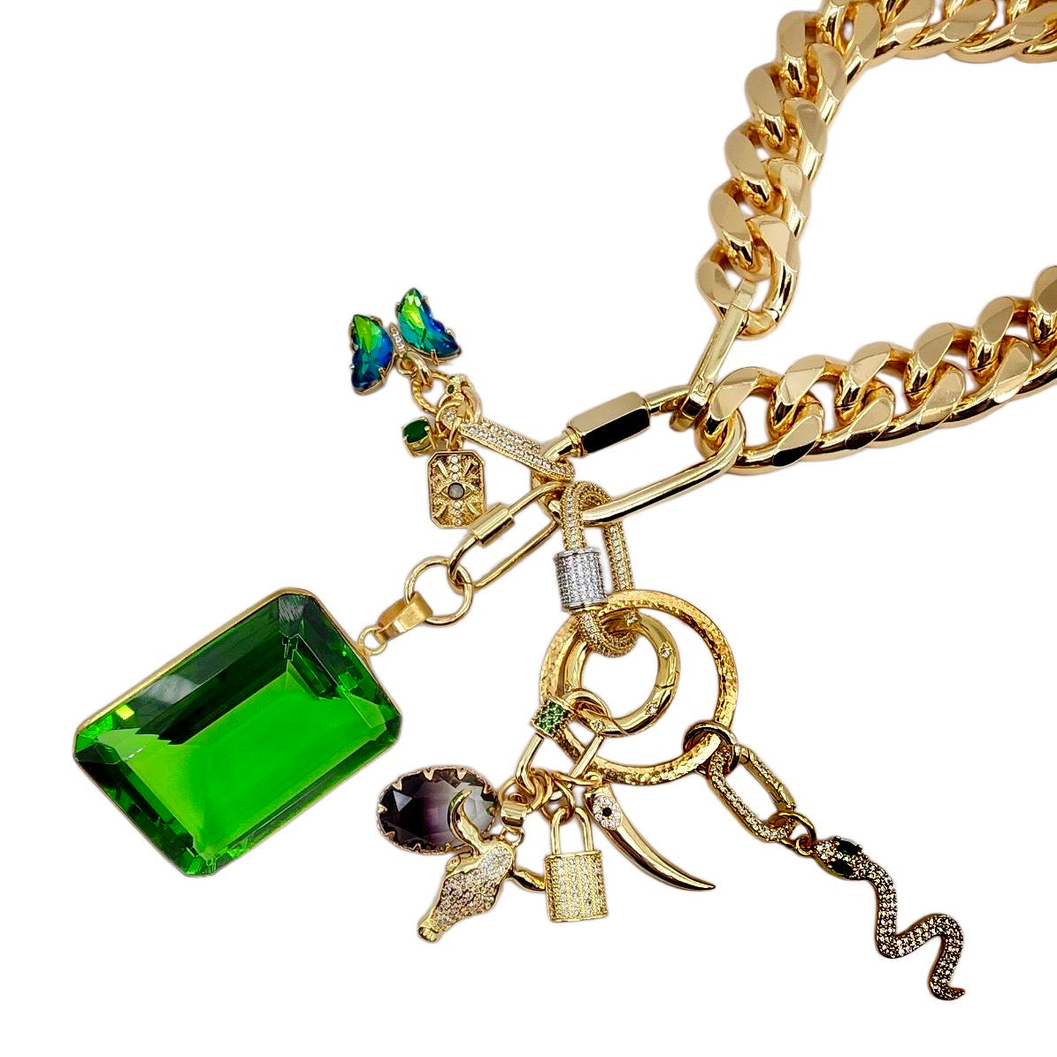 35MM 24K GOLD FILLED CZ MICRO PAVE SNAKE CHARMย