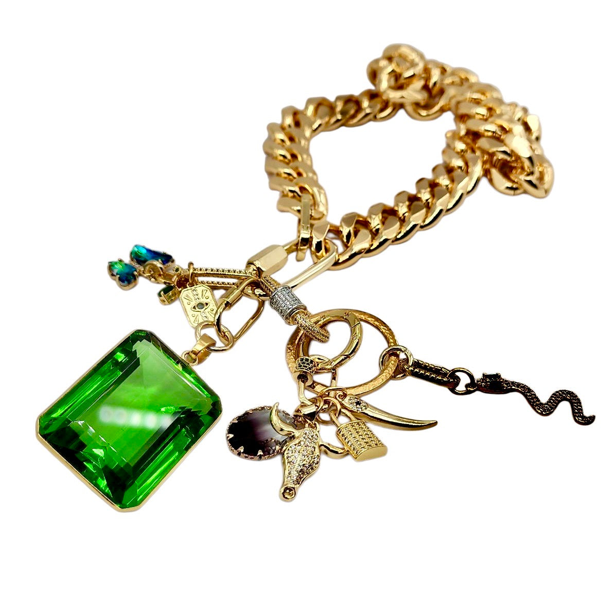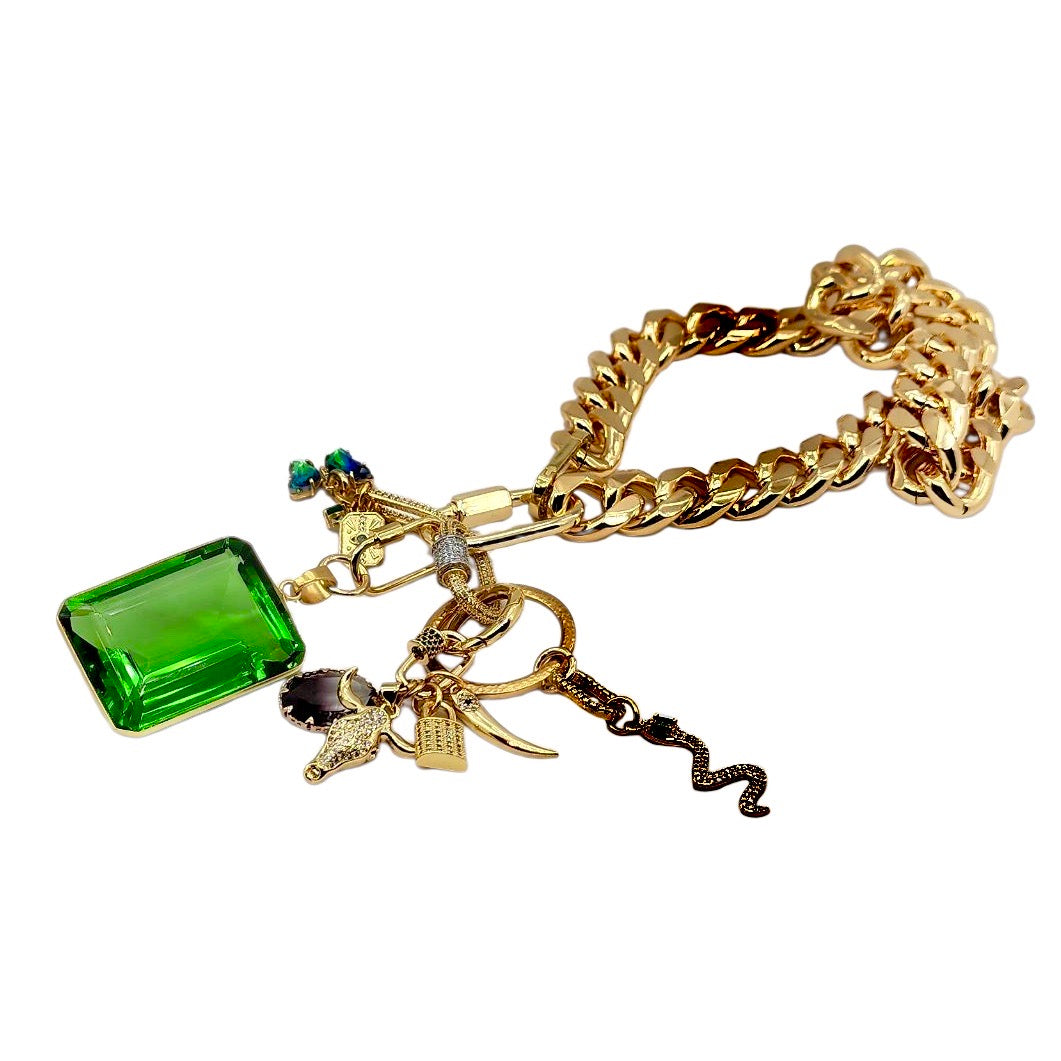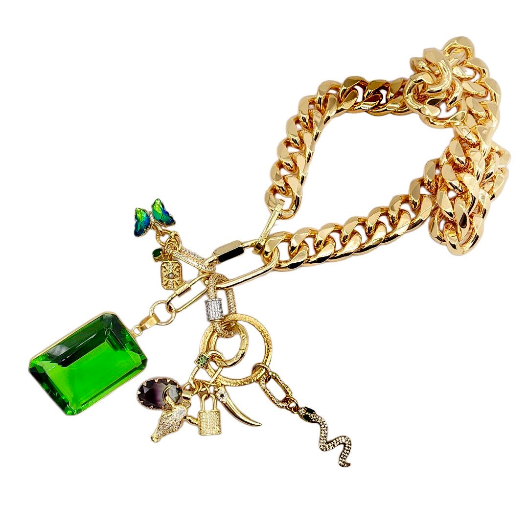 5MM 22K GOLD PLATED EMERALD GEMSTONE CHARM