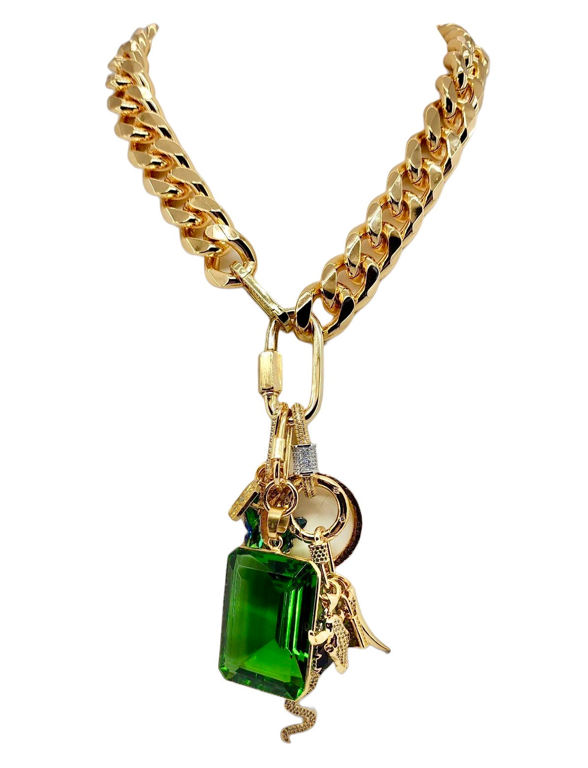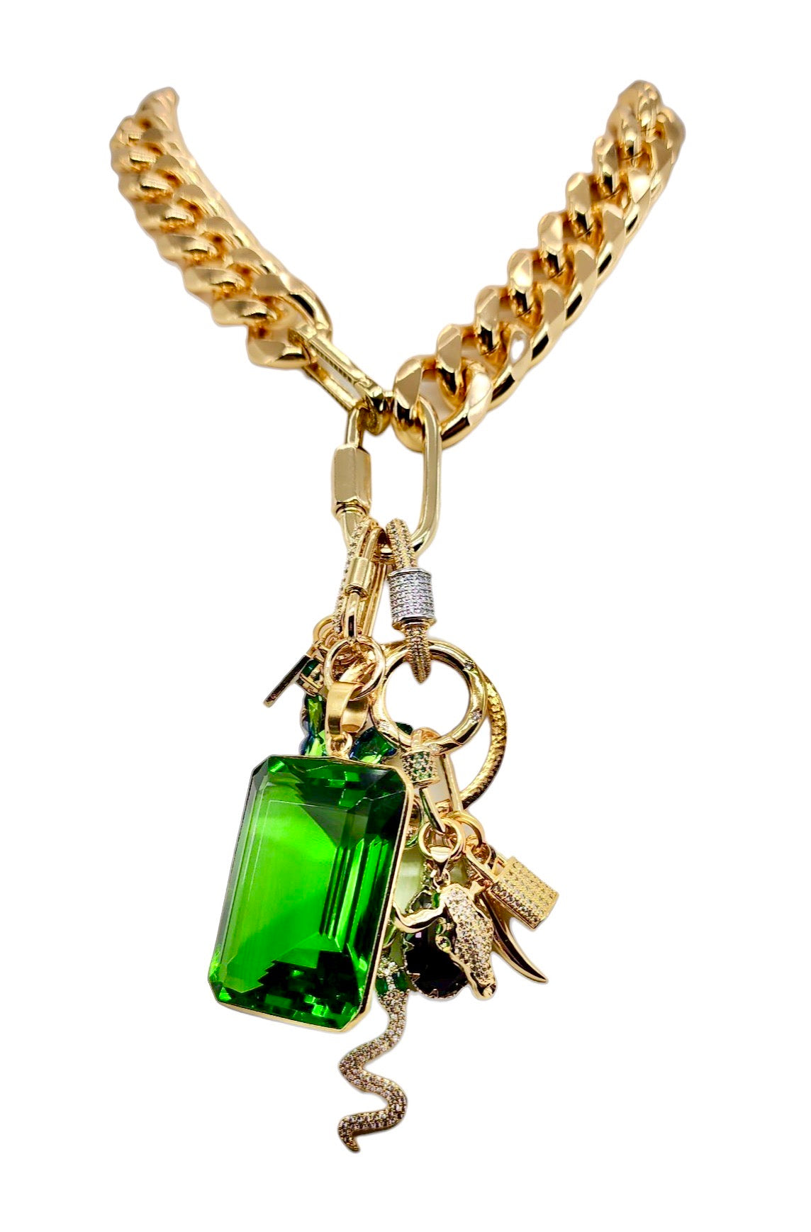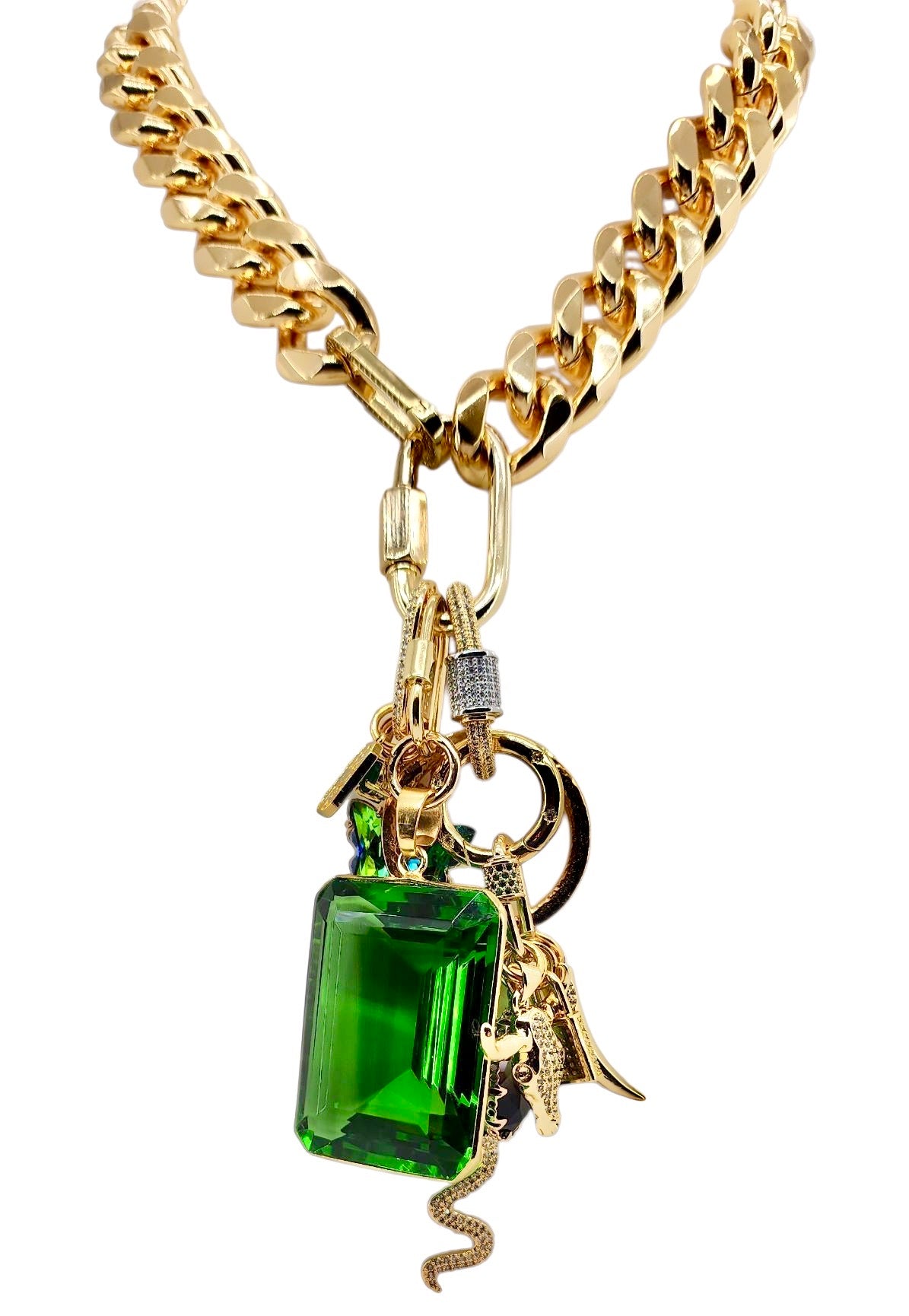 24MM 18K GOLD FILLED EMERALD CZ MICRO PAVE CARABINER