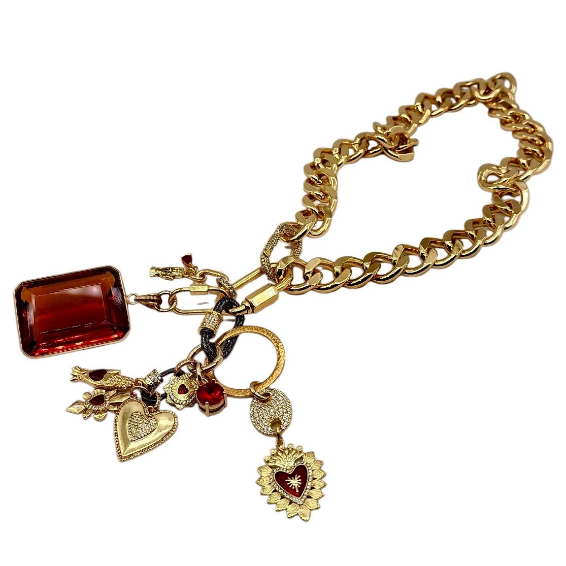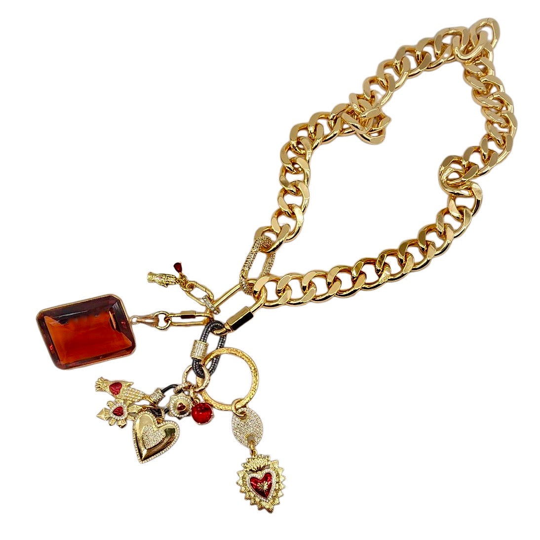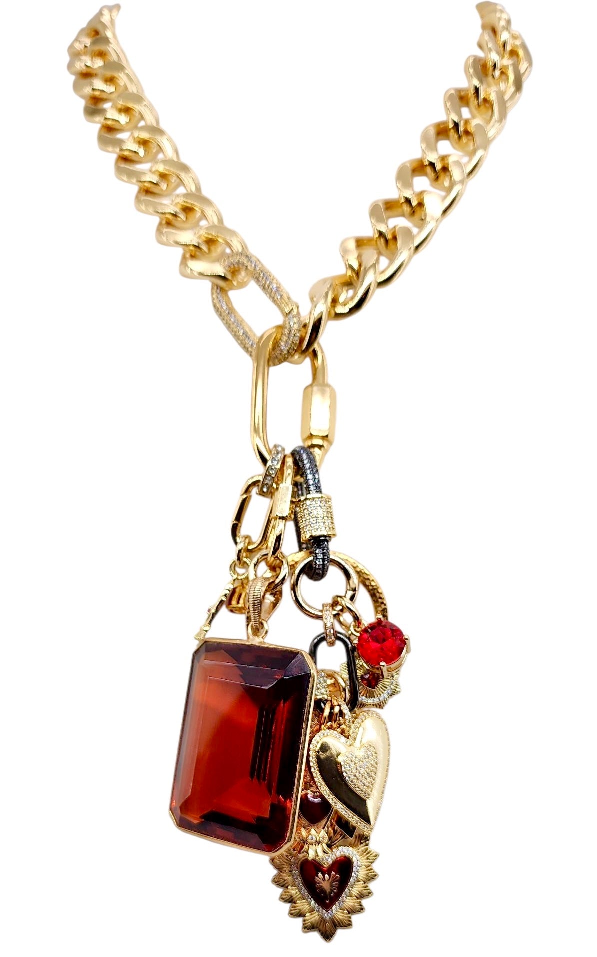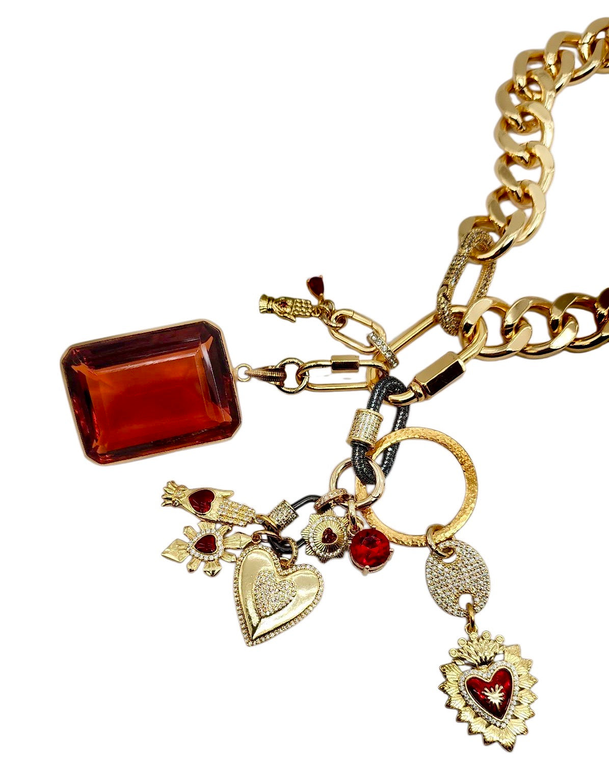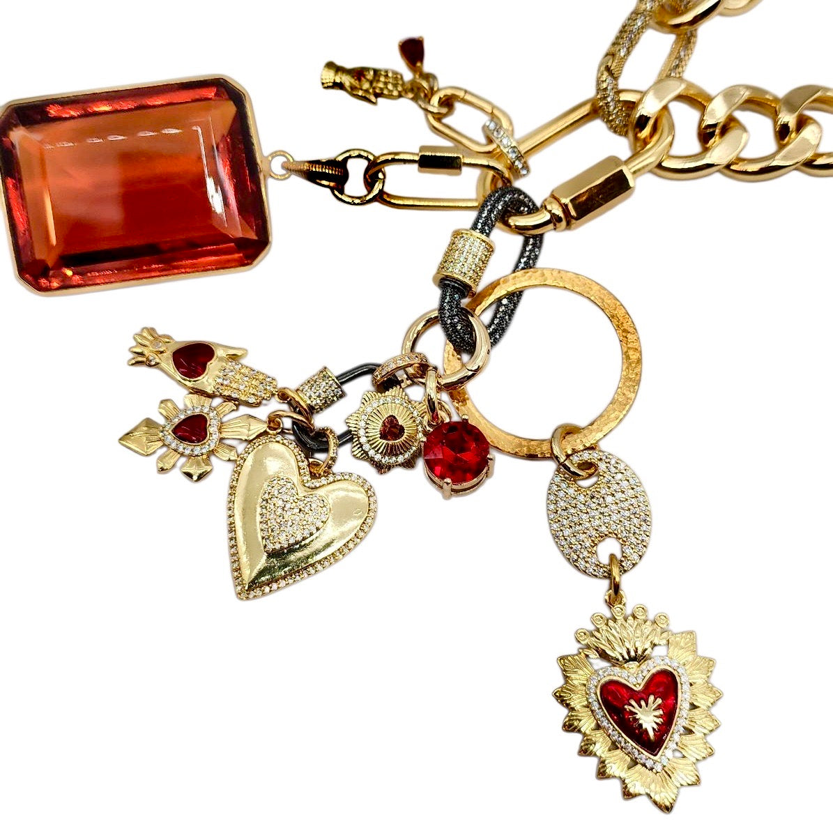 24MM GOLD & RED PLATED BRASS CZ HEART CHARM