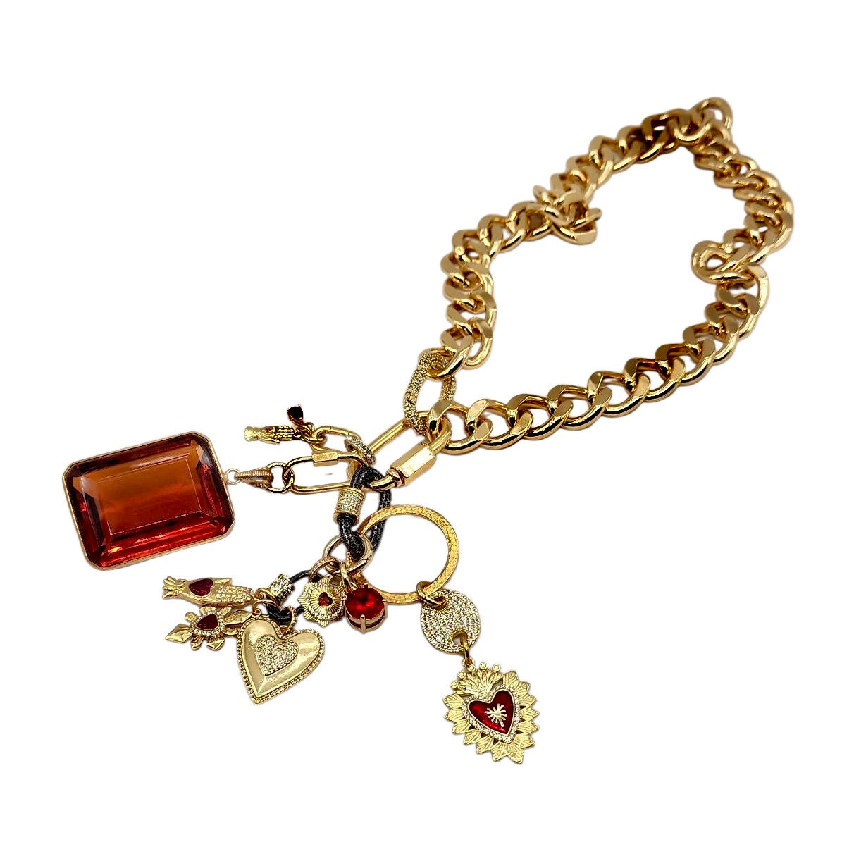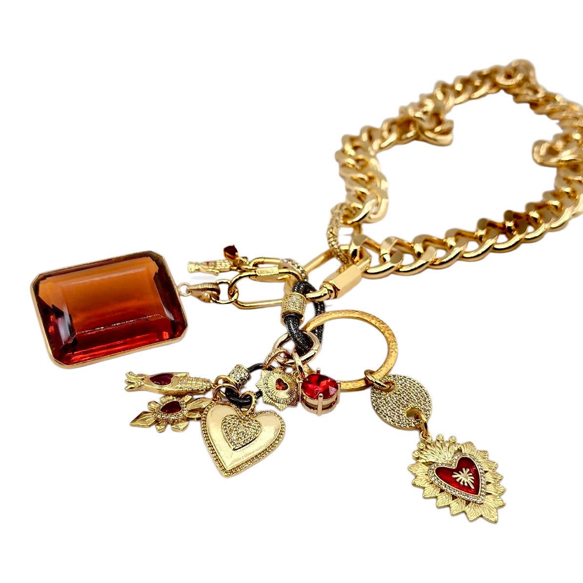 CAN BE WORN AS A NECKLACE, BRACELET AND OR BAG CHARMS. UNCLIP TO RE-ARRANGE AND OR MIX & MATCH.